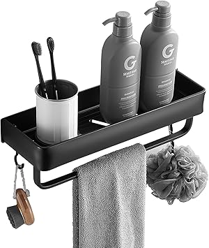 Bathroom black shelf with towel bar space aluminum corner shelves towel rack with hook shampoo hold want discount 23% ?