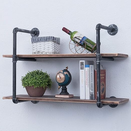 Danya B Urbanne Industrial Aged 3 Tiered Wood Print Mdf And Metal Pipe Floating Wall Shelf Gh073 The Home Depot from images.homedepot-static.com