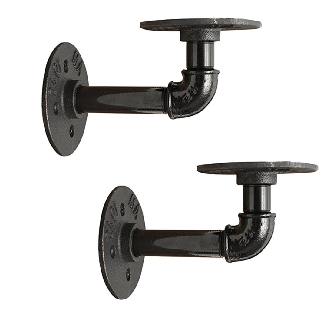 Rustic black iron pipe shelf brackets retro industrial wall mounted shelving brackets includes screws & wall anchors (black) 9/11(m l) inch 3 h x 3 w x12.7 deep industrial black iron pipe shelf brackets. Think antique brass or applied bronze to suit oak shelves, or black nickel and polished chrome for. You need one of these for each shelf bracket that you make. I couldn't find black malleable pipe at our local stores, but i did find an ebay seller who very nicely put together a custom listing of exactly what i needed for all five brackets, with free if you'd like to build the same brackets we did, then here's a handy cheat sheet.