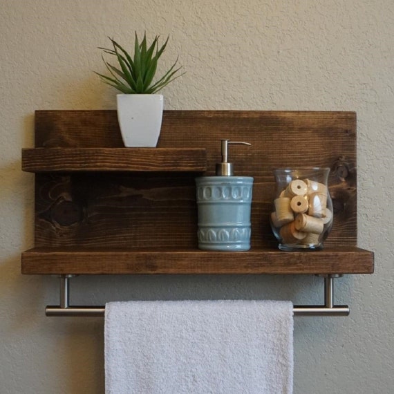 Organize it all shelf rack at amazon. Bathroom towel storage diy bathroom decor bathroom towels bathroom styling towel shelf small bathroom organization farm house bathroom decor budget bathroom bathroom cabinets. Bathroom towels, in particular, can be bulky inhibitors to an interior's flow, and many are stumped for ways to incorporate them into a room's design scheme. Pengke 2pcs rustic floating wall shelves with rails and removable towel holder,wall mounted floating shelves ledge 16 inch long, picture shelving ledge with storage, modern design for home decor.