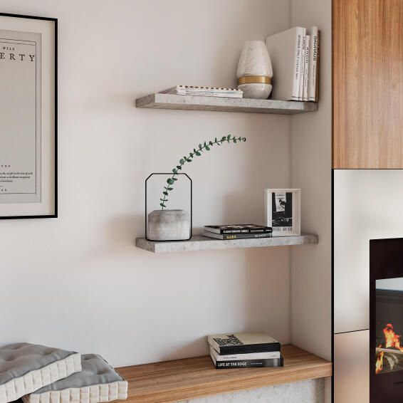Floating shelves are wall shelves that don't use traditional brackets to hold them up.